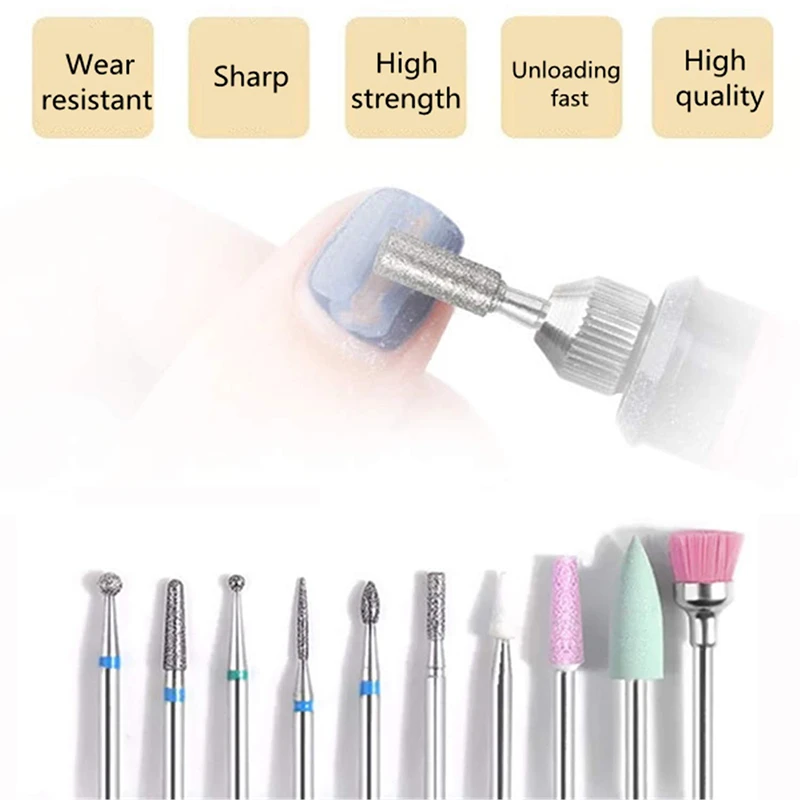 HIGH QUALITY 10Pcs/Set Manicure Tools Nail Drill set Cuticle Cleaner Dust Drill Brush Rotary Polishing Buffing F