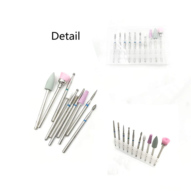 10Pcs/Set Manicure Tools Nail Drill set Cuticle Cleaner Dust Drill Brush Rotary Polishing Buffing F